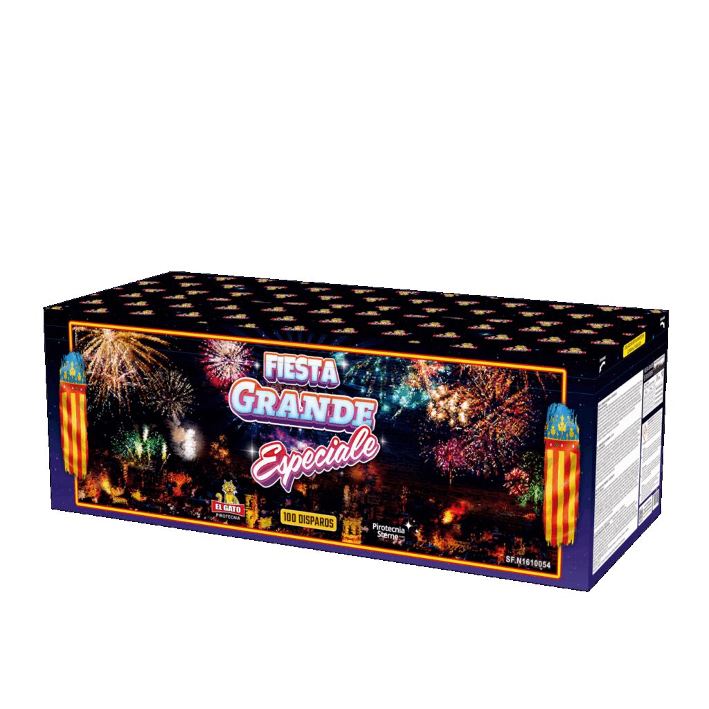 n nFiesta Grande Especial is een 30mm compound met de volgende effecten: V-Shape, W-Shape in een 100 schots. n n
