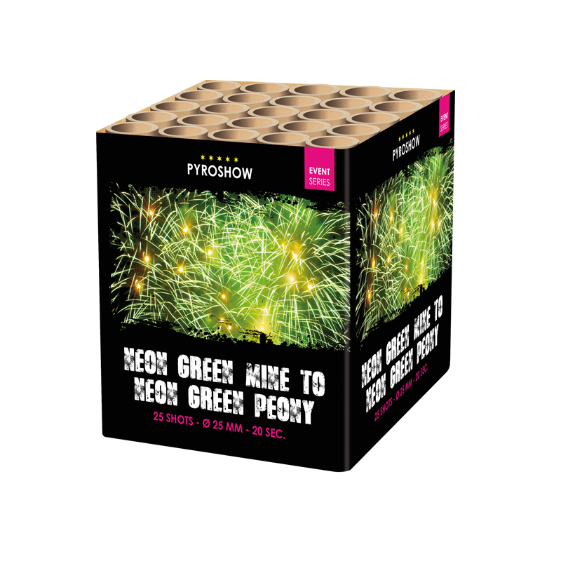 Neon Green Peony w.Green Tail & Mine Goedkoop vuurwerk kopen bij Vuurwerkwinkel Cuijk