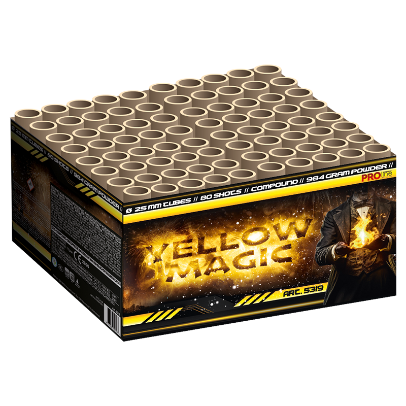 Yellow Magic 80 shots 25mm Goedkoop vuurwerk kopen bij Vuurwerkwinkel Cuijk